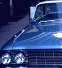 tielle, jossa hyppää suuren amerikanraudan kyytiin. Autossa