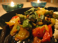 Okraa ja sipulia eli 'Bhindi du piaza'. Tästä reseptistä