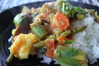 kasviksia. Kasviscurrya siis. Tähän voi käyttää