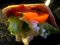 Ota pitaleivät pois uunista, leikkaa kahtia, ja täytä